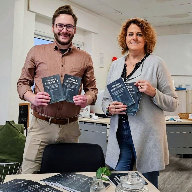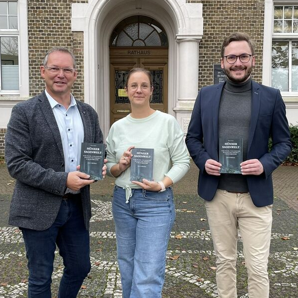 Das Forum Hünxe überreichte drei Exemplare der Hünxer Sagenwelt an das Gemeindearchiv. Bürgermeister Dirk Buschmann und Archivarin Kirsten Lehmkuhl nahmen die Bücher vom Vereinsvorsitzenden Benedikt Lechtenberg entgegen. Im vergangenen Jahr setzte der gemeinnützige Verein das Projekt mit lokalen Künstlern um und wurde dabei mit dem Heimat-Scheck des Landes NRW unterstützt. Erzählungen vom Steine schleudernden Teufel im Hünxer Wald über singende Elfen in Drevenack bis hin zu einem Gespenst in Bruckhausen, das seinen Pflug über den Acker zog, umfasst das Projekt.