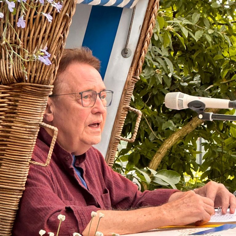 Mit einer Lesung der besonderen Art lockte das Forum Hünxe am vergangenen Samstag zahlreiche Gäste an. In einem Gewächshaus von Florist Dickmann gab der renommierte Voerder Rezitator Werner Seuken Theodor Storms Märchen „Die Regentrude“ zum Besten. Musikalisch begleitet wurde er vom Dinslakener Musiker Cesare Siglarski. Die beiden Künstler begeisterten das Publikum bei sommerlichen Temperaturen.