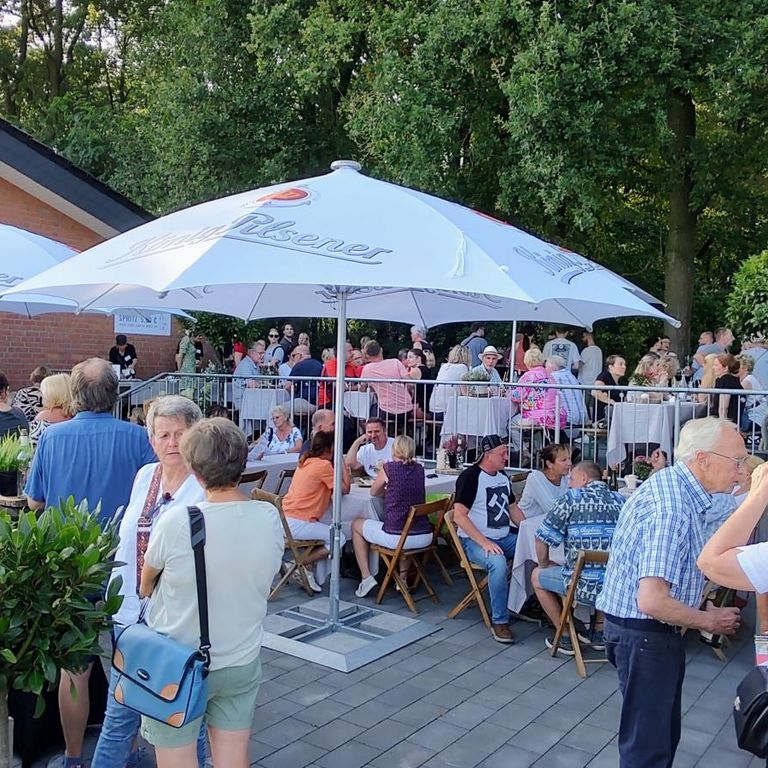 Eine erfolgreiche Premiere gelang dem Forum Hünxe vergangenen Samstag mit dem Hünxer Weinfest am Schützenhaus Krudenburg. Bei bestem Sommerwetter wurden erlesene Weine und handgemachte Köstlichkeiten unter den stilvollen Klängen des Emmericher Musikers Mattes Wissing ausgegeben. Auf der liebevoll dekorierten Terrasse fanden sich nach Schätzung des Vereins 300 Gäste zusammen, die viele Stunden lang gesellige Momente genossen.